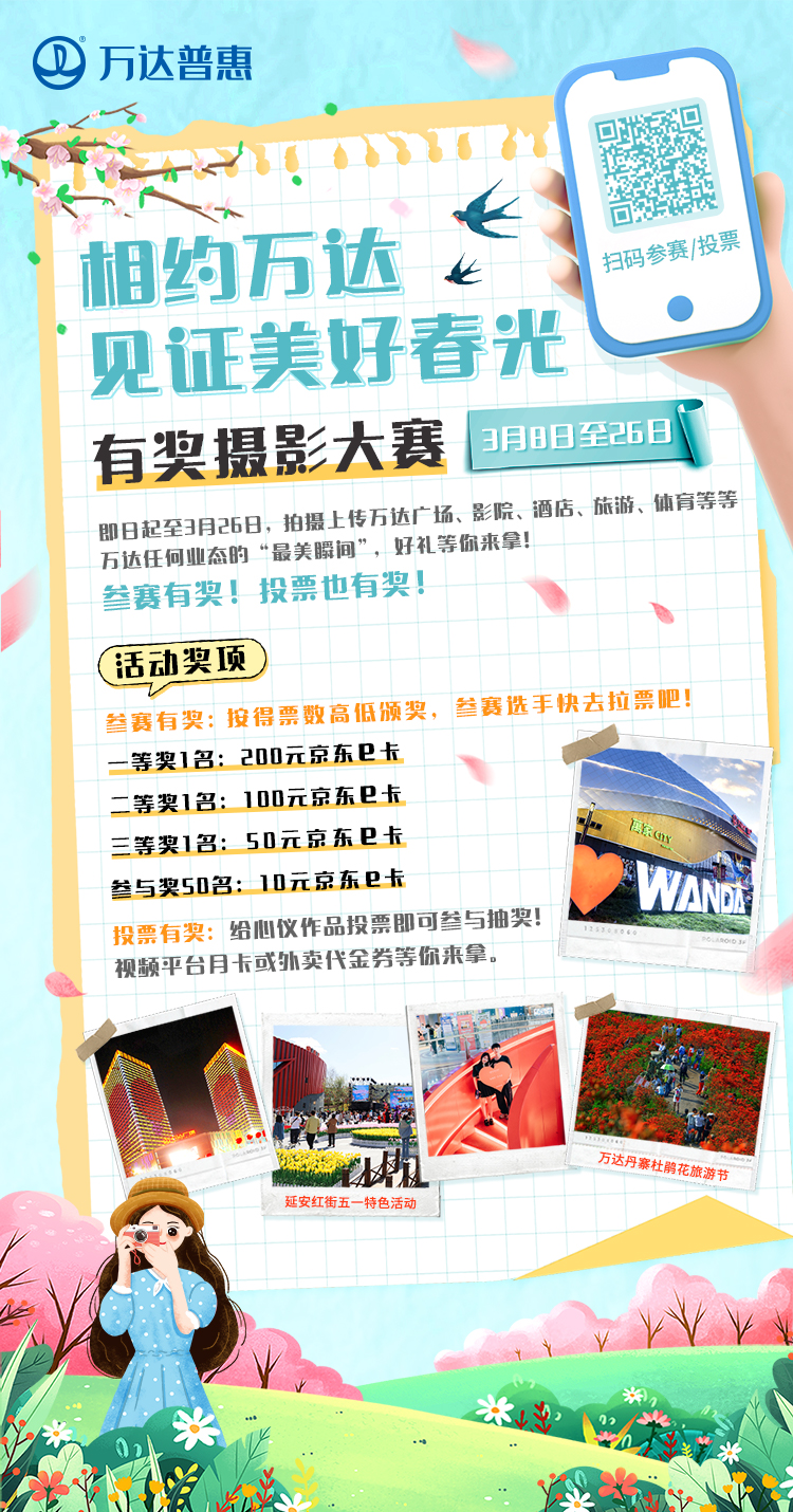 拍摄上传万达广场、影院、酒店、旅游、体育等等万达任何业态的“最美瞬间”,好礼等你来拿!